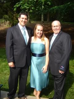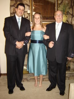 Here’s some pics of myself and my good looking men! Please excuse the fact that I didn’t fix my hair or put on make-up! I knew I was going to be a bridesmaid “stand-in”, but didn’t think about fixing myself up! :o) And Ray was complaining that he didn’t fix his hair either, and you’ll notice his brown flip flops in a few pics- don’t worry, he’s not wearing those!! And the BM’s aren’t going barefoot like I am! :o) They will look much prettier!