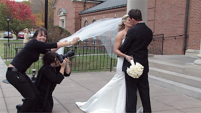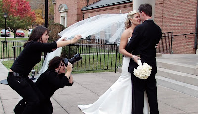 It's always great when we get to work with the ladies at McNeal Video. I checked my email this morning to find some pics from Lynette McNeal that just made me laugh. So I had to post them. A little background... the bride and groom were gracious enough to let me do some photos outside even though it was FREEZING and the wind was going strong. The veil just did not want to stay in. So Nina, my incredible assistant, was holding it. The effect of the veil blowing in the wind was just too beautiful for me not to get some pictures of it.